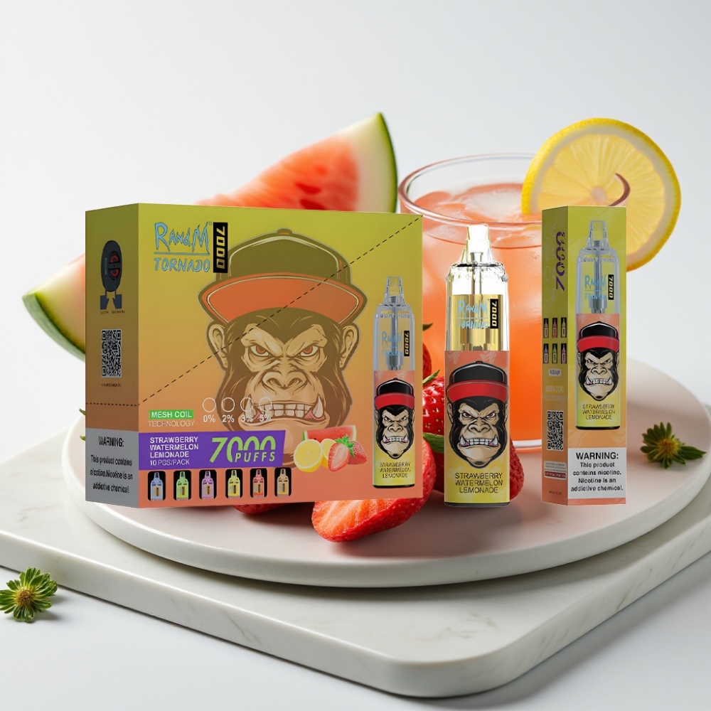 Fumot Tornado 7000 Puffs Recarregável Sabor Morango Melancia Limonada 14ML 850MAH Tipo-C