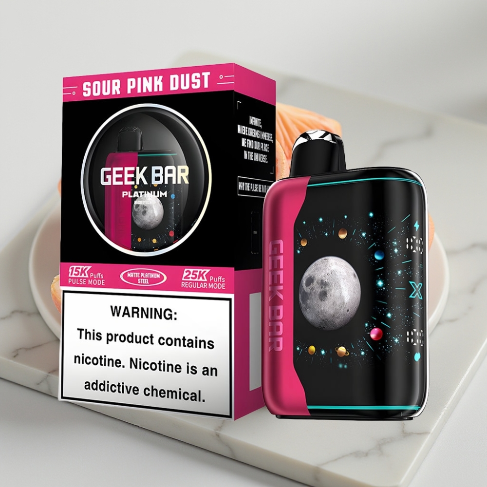 GEEK BAR Platinum Edition 25000 Puffs – Sabor Pó Rosa Azedo, Tela 3D Dinâmica, Carga Rápida USB-C