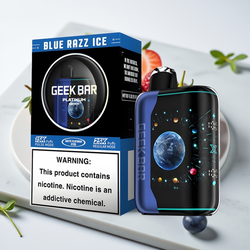 GEEK BAR Platinum Edition – Blue Razz Ice, 25000 Puffs, Tela 3D, Carga Rápida USB-C