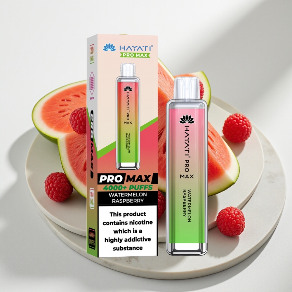 Hayati Pro Max 4000 Puffs Disposable Vape Melancia Framboesa – 4000 Puffs, 1400mAh, Recarregável