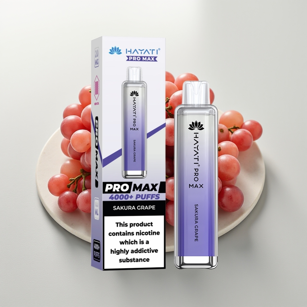 Hayati Pro Max 4000 Puffs Disposable Vape Sakura Uva – 1400mAh, Recarregável, 2ml/10ml