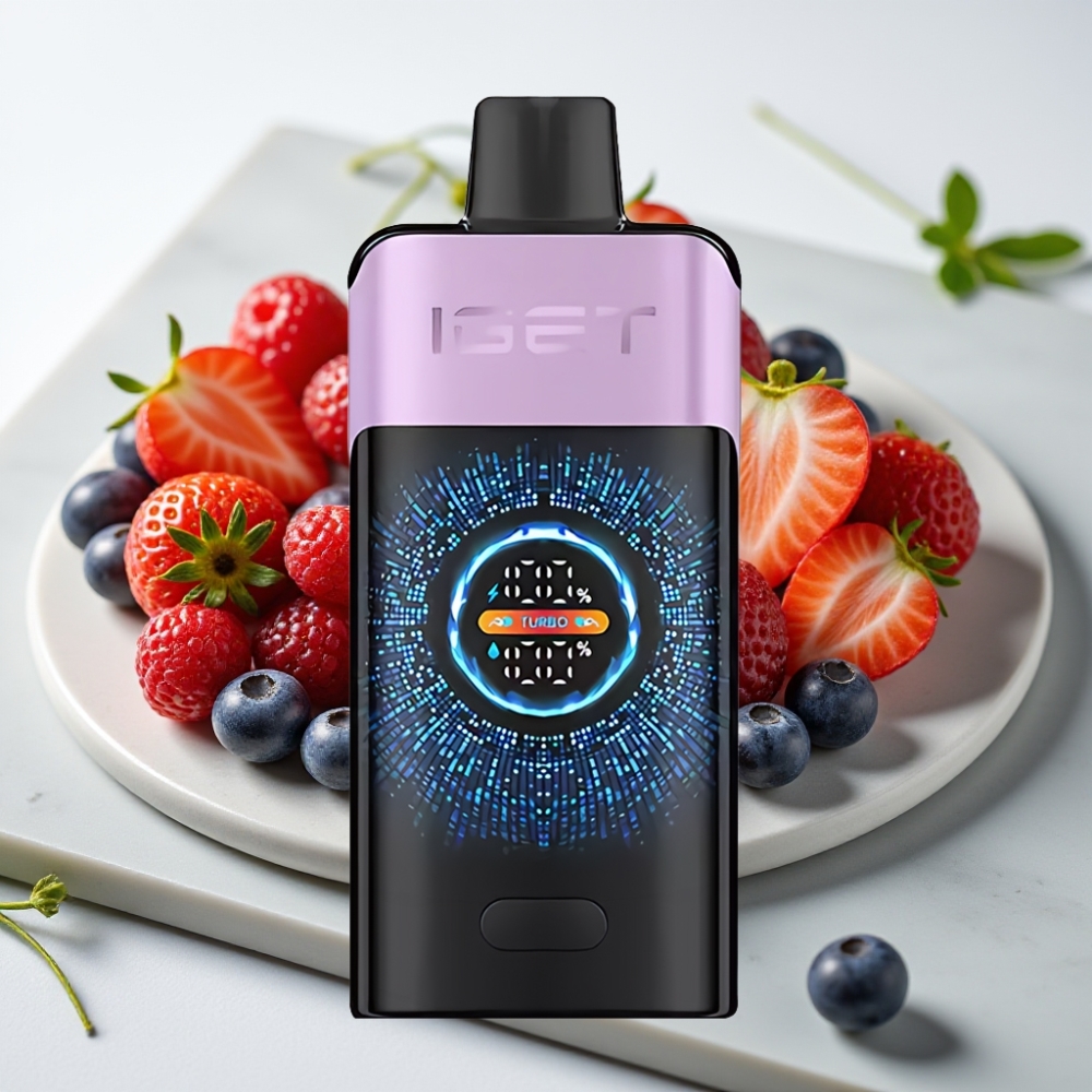 IGET ONE 12000 Puffs Disposable Vape – Frutas Vermelhas Geladas, 2700 mAh, Tela Colorida Curva