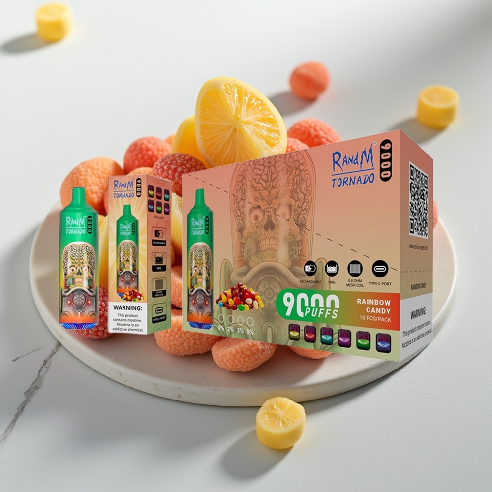 RandM Tornado 9000 Puffs Disposable Vape Rainbow Candy (Balão Arco-Íris) – 18mL, 850mAh, Mesh Coil