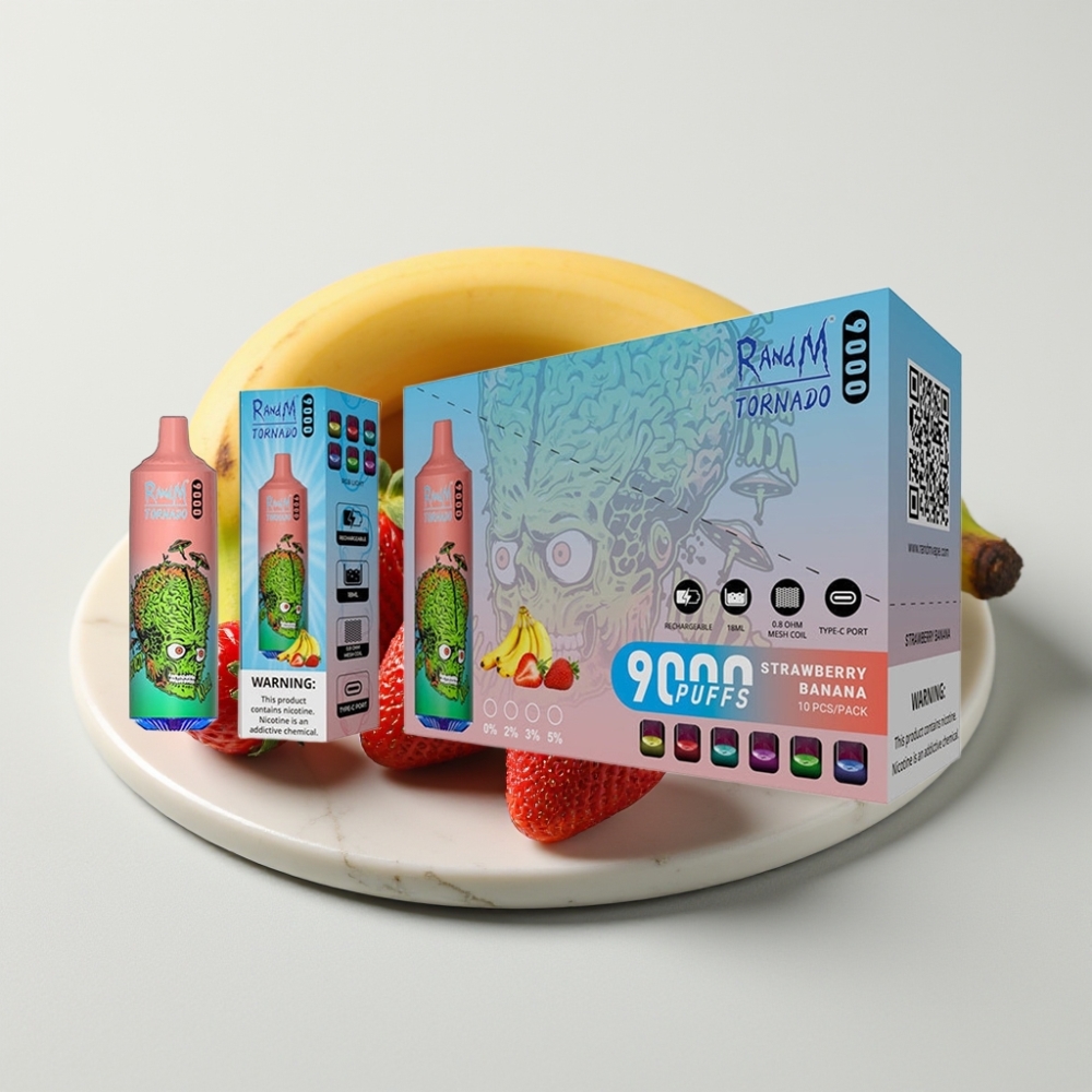 RandM Tornado 9000 Puffs – Morango Banana, 18mL, 850mAh, Mesh Coil